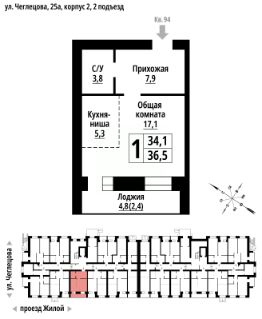 2-к, Чеглецова, 25а корп. 2 Показать на карте