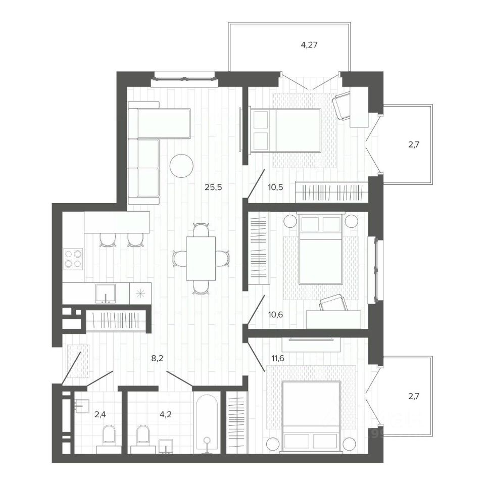 Продаётся 4-комнатная квартира в строящемся доме (Корпус 2), срок сдачи: II-кв. 2026, общей площадью 83.07 кв.м., на 6 этаже. Новый жилой комплекс ''Вышка зелёный квартал на горе'' от группы компаний ''Мой дом'' расположен по адресу: г. Барнаул, по ул. Змеиногорский тракт.