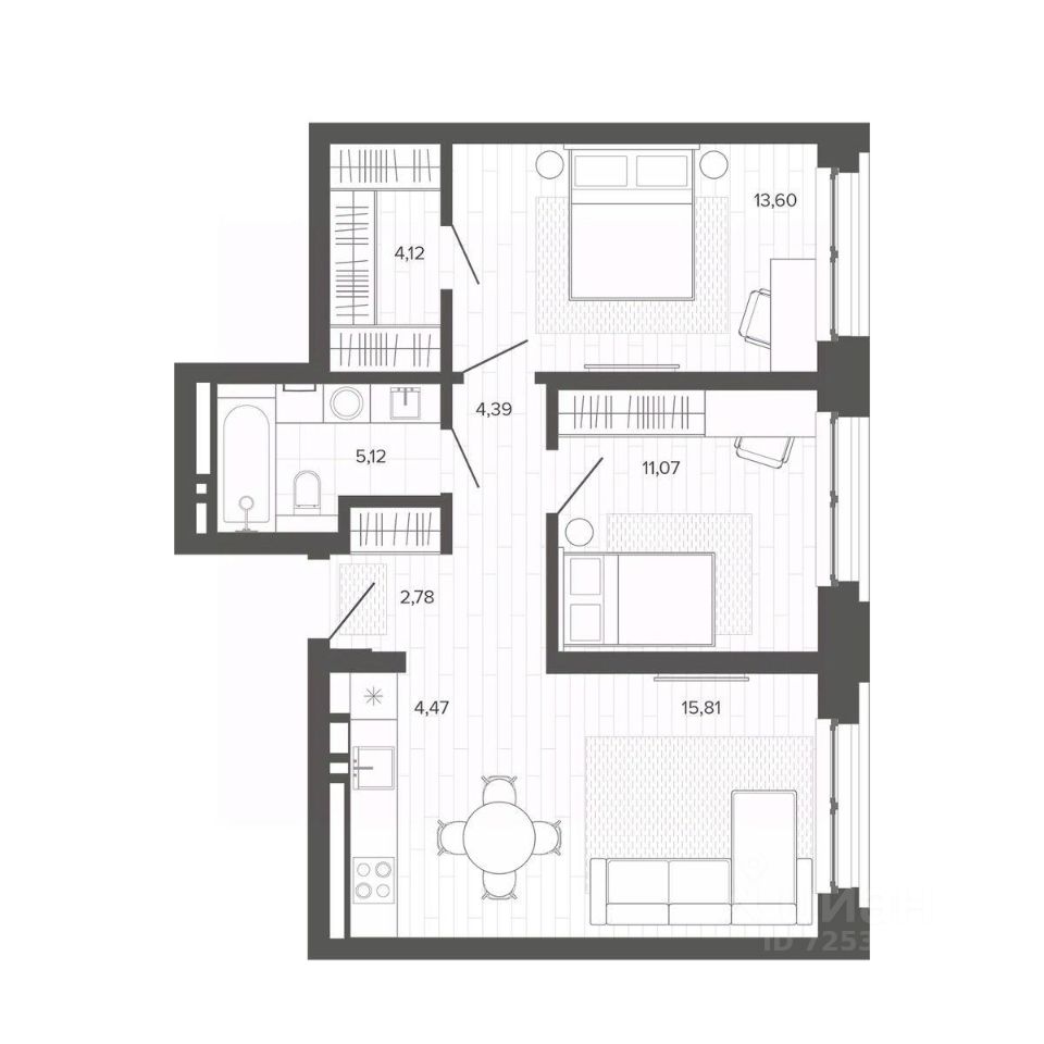 Продаётся 2-комнатная квартира в строящемся доме (Меланж), срок сдачи: IV-кв. 2026, общей площадью 61.37 кв.м., на 2 этаже. Меланж - дом рядом с парком. Эстетика городской жизни Эстетика городской жизни - значит иметь возможность слушать пение птиц, наслаждаться зеленью деревьев, заниматься спортом на свежем воздухе или отправиться на прогулку в любое время. Это не просто архитектурное решение, а отличный повод изменить свои ежедневные привычки, сделать жизнь более интересной и наполненной. Внутреннее благоустройство С помощью зданий будет сформирована закрытая территория. Это разделит пространство на общественное и частное, изолирует двор от городского шума и суеты, превратит его в безопасное и приятное место для отдыха жителей. Двор без машин, игровые площадки и зелёное зонирование - атрибуты более высокого качества жизни в домах комфорт класса. Архитектура В фасаде будут использованы благородные и ''тёплые'' материалы - кирпич. Это придаст зданию эстетическую привлекательность, практичность и долговечность. Архитектура дома, не только сохранит историю и традиции, но и подчеркнет его особую изысканность и индивидуальность на фоне современной застройки. Планировки для каждого Каждая планировка квартиры - тщательно продуманное решение, основанное на индивидуальных сценариях жизни будущих жильцов. Квартиры с окном в ванной, гостиная с шестиметровыми витражами или уютные апартаменты с отдельным входом направлены на формирование неповторимого образа жизни будущих владельцев недвижимости.