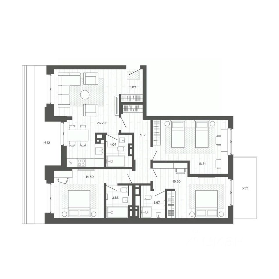 Продаётся 4-комнатная квартира в строящемся доме (Меланж), срок сдачи: IV-кв. 2026, общей площадью 119.93 кв.м., на 8 этаже. Меланж - дом рядом с парком. Эстетика городской жизни Эстетика городской жизни - значит иметь возможность слушать пение птиц, наслаждаться зеленью деревьев, заниматься спортом на свежем воздухе или отправиться на прогулку в любое время. Это не просто архитектурное решение, а отличный повод изменить свои ежедневные привычки, сделать жизнь более интересной и наполненной. Внутреннее благоустройство С помощью зданий будет сформирована закрытая территория. Это разделит пространство на общественное и частное, изолирует двор от городского шума и суеты, превратит его в безопасное и приятное место для отдыха жителей. Двор без машин, игровые площадки и зелёное зонирование - атрибуты более высокого качества жизни в домах комфорт класса. Архитектура В фасаде будут использованы благородные и ''тёплые'' материалы - кирпич. Это придаст зданию эстетическую привлекательность, практичность и долговечность. Архитектура дома, не только сохранит историю и традиции, но и подчеркнет его особую изысканность и индивидуальность на фоне современной застройки. Планировки для каждого Каждая планировка квартиры - тщательно продуманное решение, основанное на индивидуальных сценариях жизни будущих жильцов. Квартиры с окном в ванной, гостиная с шестиметровыми витражами или уютные апартаменты с отдельным входом направлены на формирование неповторимого образа жизни будущих владельцев недвижимости.