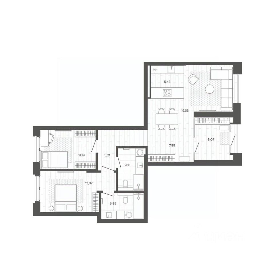 Продаётся 3-комнатная квартира в строящемся доме (Меланж), срок сдачи: IV-кв. 2026, общей площадью 83.23 кв.м., на 1 этаже. Меланж - дом рядом с парком. Эстетика городской жизни Эстетика городской жизни - значит иметь возможность слушать пение птиц, наслаждаться зеленью деревьев, заниматься спортом на свежем воздухе или отправиться на прогулку в любое время. Это не просто архитектурное решение, а отличный повод изменить свои ежедневные привычки, сделать жизнь более интересной и наполненной. Внутреннее благоустройство С помощью зданий будет сформирована закрытая территория. Это разделит пространство на общественное и частное, изолирует двор от городского шума и суеты, превратит его в безопасное и приятное место для отдыха жителей. Двор без машин, игровые площадки и зелёное зонирование - атрибуты более высокого качества жизни в домах комфорт класса. Архитектура В фасаде будут использованы благородные и ''тёплые'' материалы - кирпич. Это придаст зданию эстетическую привлекательность, практичность и долговечность. Архитектура дома, не только сохранит историю и традиции, но и подчеркнет его особую изысканность и индивидуальность на фоне современной застройки. Планировки для каждого Каждая планировка квартиры - тщательно продуманное решение, основанное на индивидуальных сценариях жизни будущих жильцов. Квартиры с окном в ванной, гостиная с шестиметровыми витражами или уютные апартаменты с отдельным входом направлены на формирование неповторимого образа жизни будущих владельцев недвижимости.