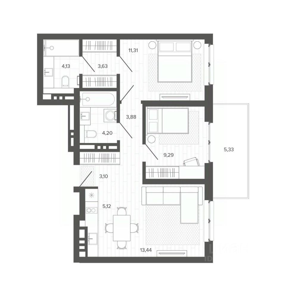 Продаётся 3-комнатная квартира в строящемся доме (Меланж), срок сдачи: IV-кв. 2026, общей площадью 63.43 кв.м., на 3 этаже. Меланж - дом рядом с парком. Эстетика городской жизни Эстетика городской жизни - значит иметь возможность слушать пение птиц, наслаждаться зеленью деревьев, заниматься спортом на свежем воздухе или отправиться на прогулку в любое время. Это не просто архитектурное решение, а отличный повод изменить свои ежедневные привычки, сделать жизнь более интересной и наполненной. Внутреннее благоустройство С помощью зданий будет сформирована закрытая территория. Это разделит пространство на общественное и частное, изолирует двор от городского шума и суеты, превратит его в безопасное и приятное место для отдыха жителей. Двор без машин, игровые площадки и зелёное зонирование - атрибуты более высокого качества жизни в домах комфорт класса. Архитектура В фасаде будут использованы благородные и ''тёплые'' материалы - кирпич. Это придаст зданию эстетическую привлекательность, практичность и долговечность. Архитектура дома, не только сохранит историю и традиции, но и подчеркнет его особую изысканность и индивидуальность на фоне современной застройки. Планировки для каждого Каждая планировка квартиры - тщательно продуманное решение, основанное на индивидуальных сценариях жизни будущих жильцов. Квартиры с окном в ванной, гостиная с шестиметровыми витражами или уютные апартаменты с отдельным входом направлены на формирование неповторимого образа жизни будущих владельцев недвижимости.
