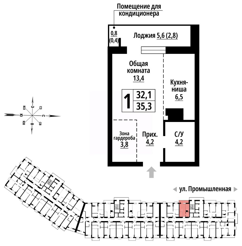 продам 1-к, Промышленная, 106 315 170 ₽
