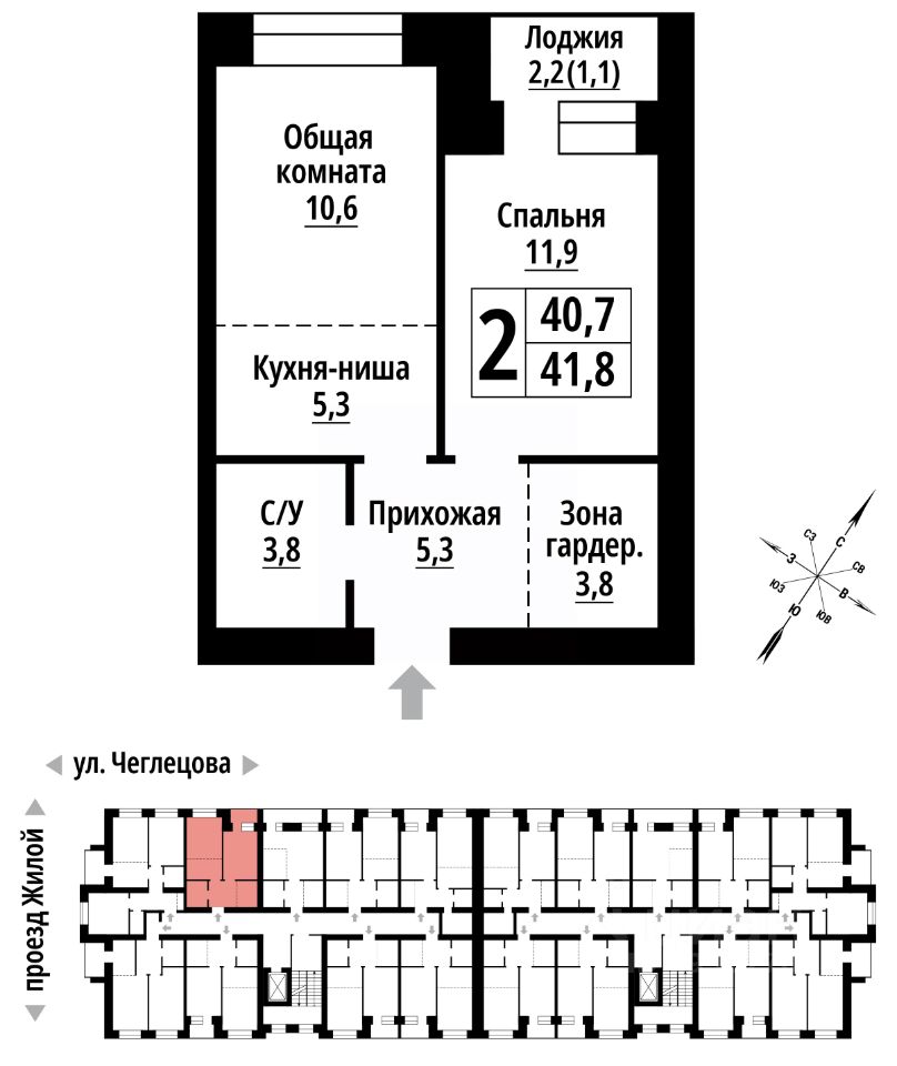 продам 2-к, Чеглецова, 25а корп. 16 955 520 ₽