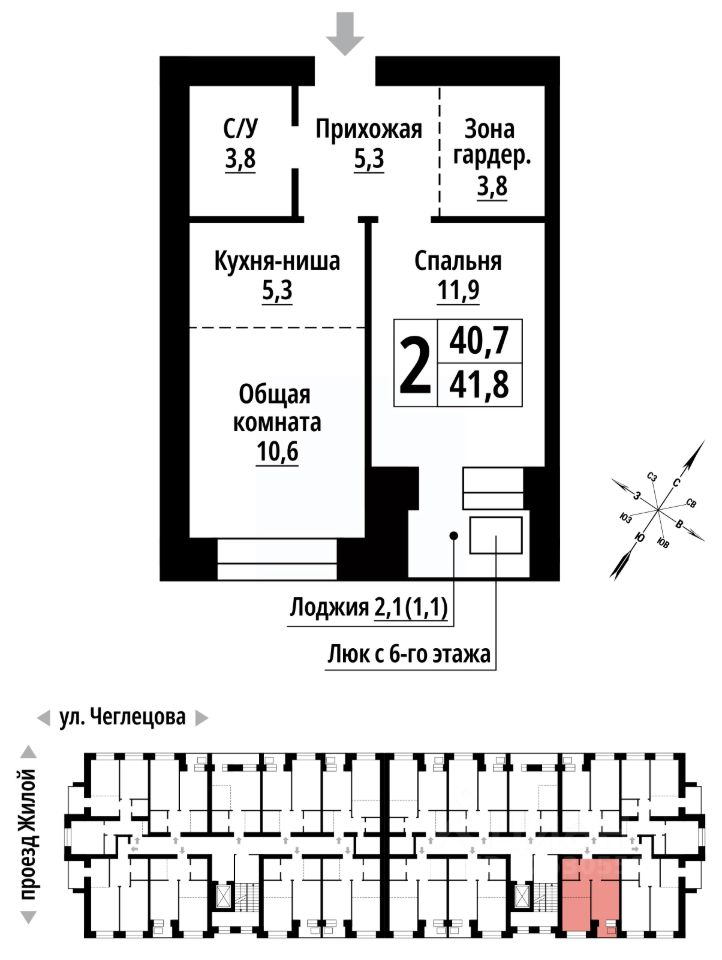 продам 2-к, Чеглецова, 25а корп. 16 997 320 ₽
