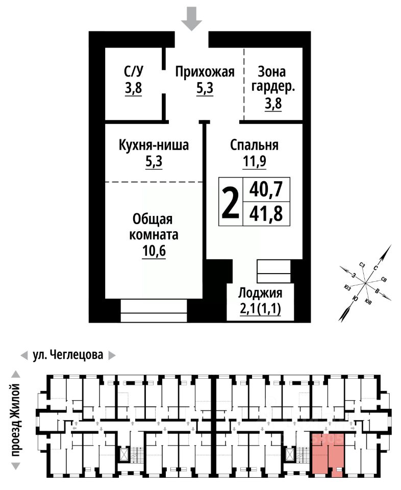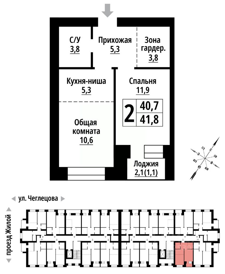 Продаётся 2-комнатная квартира в строящемся доме (Корпус 1), срок сдачи: II-кв. 2027, общей площадью 41 кв.м., на 2 этаже. ЖК ''Тургенев'' на ул. Чеглецова, 25а представляет из себя два кирпичных здания высотой 9 этажей. Предлагаем к покупке первый корпус, состоящий из двух подъездов. В каждом запроектированы квартиры с продуманной планировкой от 34,8-57,7 квадратных метров. Фасады выполнены в стилизованных формах с использованием остекленных лоджий и архитектурной подсветкой. Высота 1 и 9 этажа - 3 метра. На первом этаже предусмотрены нежилые помещения с гибким функциональным назначением.