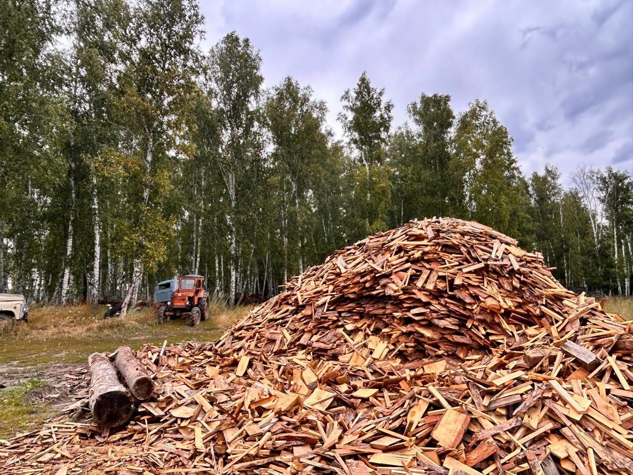 Есть абсолютно все для работы: ленточная пилорама, кромкообрезной станок, автомобиль УРАЛ с монипулятором и прицеп роспуск к нему, автомобиль ГАЗ-53 и трактор Т-40.