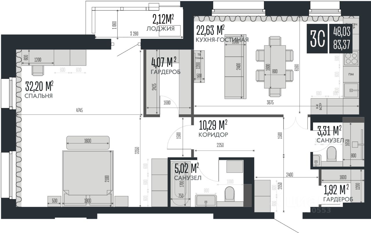 Продаётся 3-комнатная квартира в строящемся доме (Дом 36в (блок-секция 3)), срок сдачи: III-кв. 2026, общей площадью 83.37 кв.м., на 7 этаже. Новый жилой комплекс ''Opera Residence'' от Специализированного застройщика ''Легион'' расположен по адресу г. Барнаул, Сибирский проспект.
