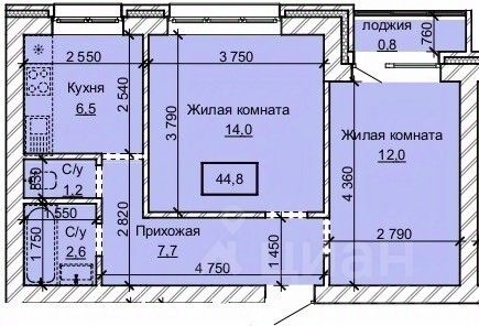 Общая площадь44,8 м2