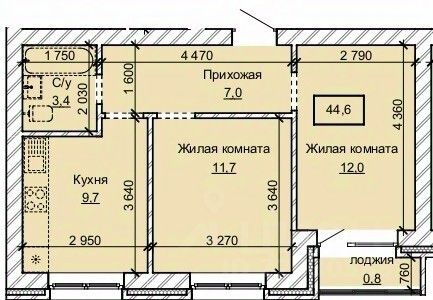 Общая площадь44,6 м2
