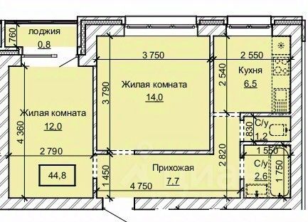 Общая площадь44,8 м2