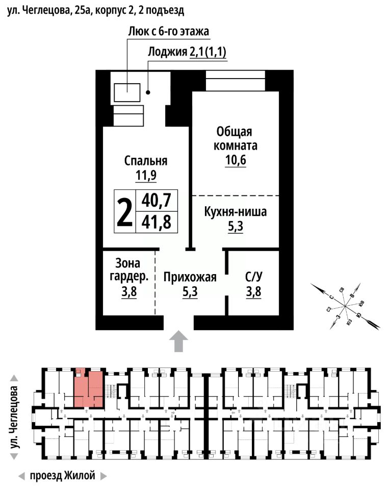 продам 2-к, Чеглецова, 25а корп. 26 788 320 ₽