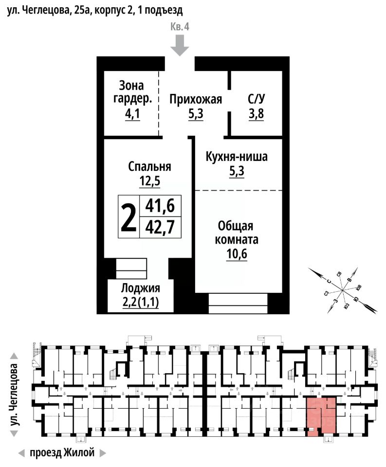 продам 2-к, Чеглецова, 25а корп. 26 806 380 ₽