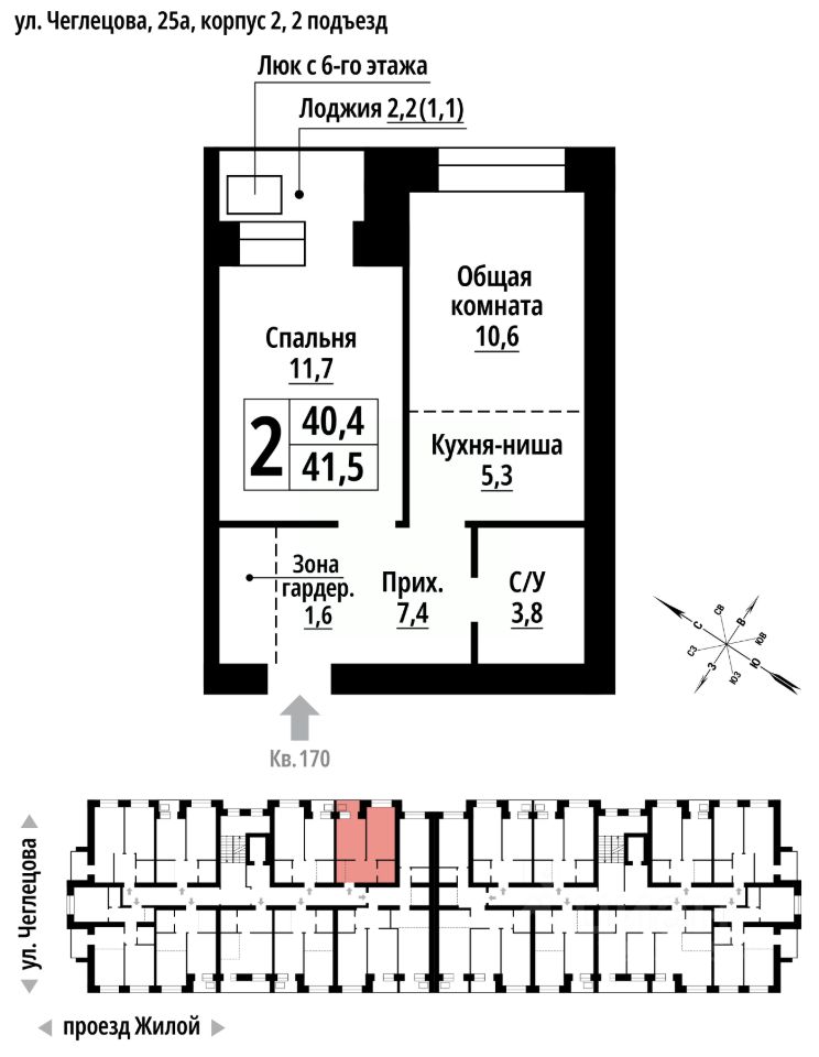 продам 2-к, Чеглецова, 25а корп. 26 743 750 ₽