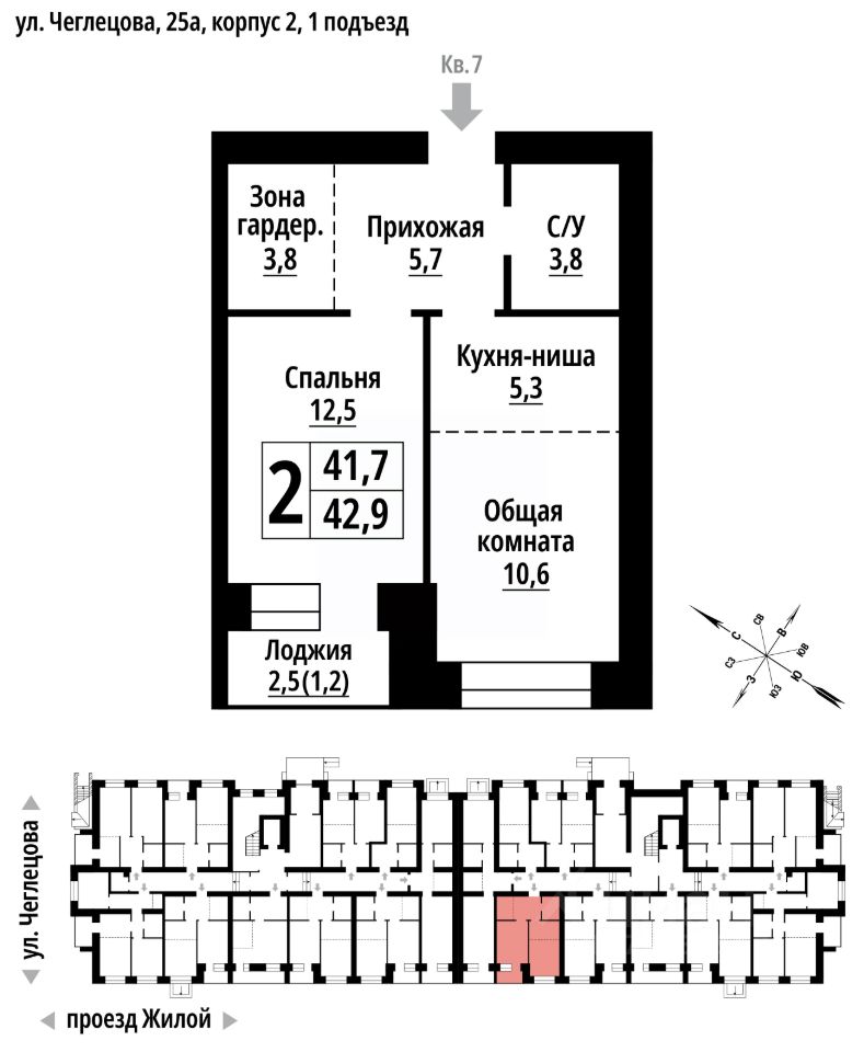 продам 2-к, Чеглецова, 25а корп. 26 795 360 ₽