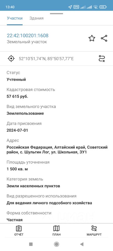 Кадастровый номер 22 42 100201 1608