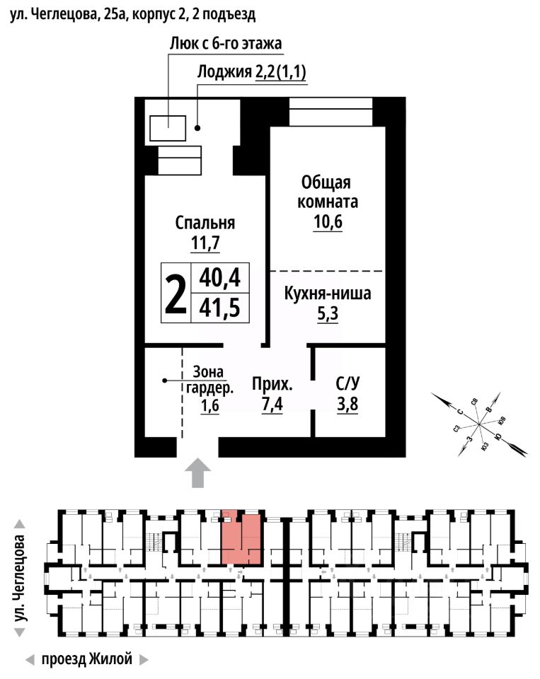 продам 2-к, Чеглецова, 25а корп. 26 660 750 ₽