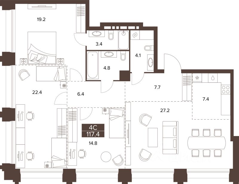 Продаётся 3-комнатная квартира в строящемся доме (Башня 3), срок сдачи: III-кв. 2029, общей площадью 117.4 кв.м., на 12 этаже. Новый жилой комплекс ''Сахаров Парк'' от Специализированного застройщика ''ДомСтрой-Барнаул22'' расположен по адресу: г. Барнаул, Социалистический пр-кт.