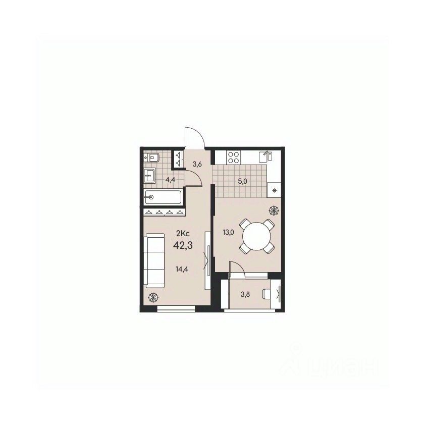 Общая площадь42,3 м2