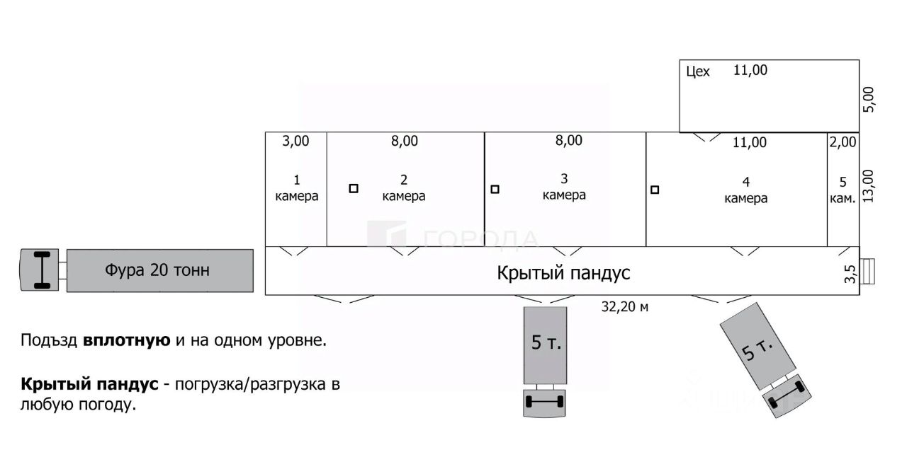 3. Гараж на 2 авто или спецтехники с воротами 3,5 х 3,5 метра. Офисное помещение над гаражом. Суммарно 300 м2,
