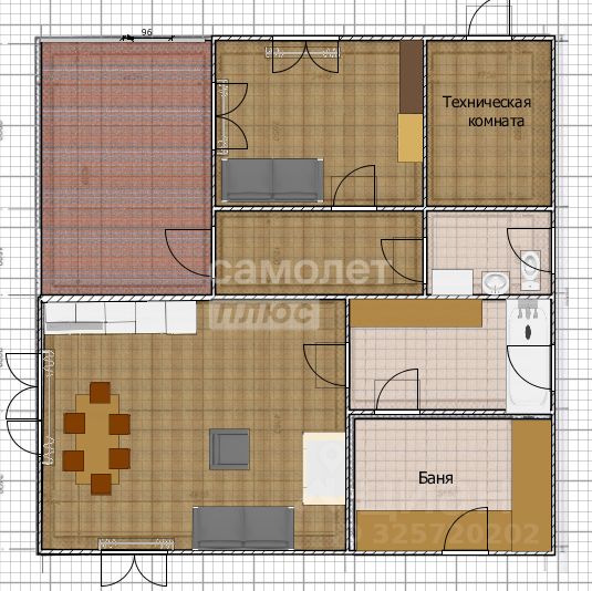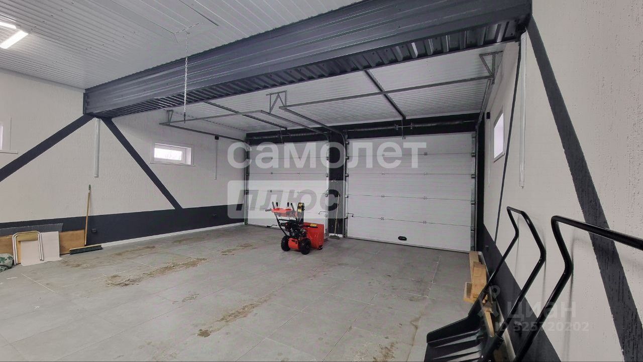 Гараж: площадь 59 м2 (на 2 машины), материал стен - сибит, облицовочный кирпич, крыша - черепица, двери подъемные, оборудован стеллажами и местом для хранения инвентаря.