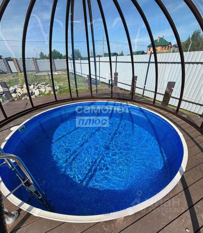 Уличный бассейн: диаметр чаши - 3, 5 м, глубина - 1, 25 м, металлокаркасный купол, техническое помещение для фильтрации и нагрева воды.