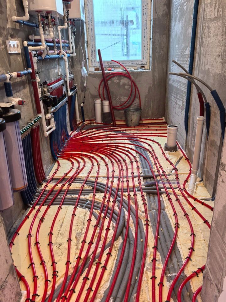В доме будут выполнены теплые полы, + утеплитель и закрыт полусухой стяжкой Будут смонтированы внутрипольные конвекторы + радиаторы отопления.