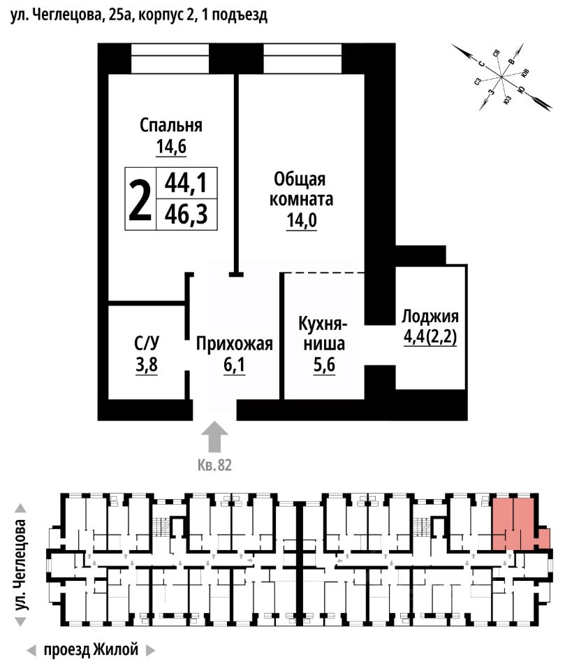 продам 2-к, Чеглецова, 25а корп. 27 463 560 ₽