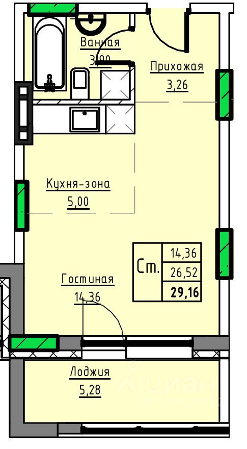 Общая площадь29,16 м2