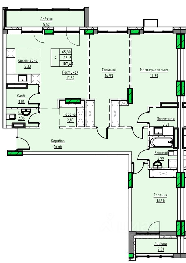 Продаётся 4-комнатная квартира в строящемся доме (Дом 1), срок сдачи: II-кв. 2029, общей площадью 107.4 кв.м., на 10 этаже. 10-ти этажный жилой дом в г. Заринске по адресу пр-т. Строителей, 29в. Проектом предлагается 3-х подъездный, 10-ти этажный жилой дом с встроенными на первом этаже помещениями общественного назначения. Исходя из ориентации дома входы в подъезды предусмотрены со стороны двора, тогда как в нежилые помещения - со стороны пр-т. Строителей. Вокруг здания предусматривается круговой проезд для автомобильного транспорта. Парковки для постоянного, временного хранения автомобилей, а также парковки для нежилых помещений предусмотрены, при этом согласно нормативам градостроительного проектирования Алтайского края от 29.12.2022 N 537, машино-мест может располагаться на прилегающей территории более 90 штук. Детские, спортивные площадки запроектированы с учетом нормативных расстояний от жилья и парковок. В жилом доме предусмотрено 222 квартир в том числе: Студии - 841-комн. - 482-х комн. - 543-х комн. - 304-х комн. - 6Имеется возможность объединения квартир для увеличения площади. Высота первого этажа - 3,6 м, жилых этажей - 3 м. В подвале предусмотрены кладовые для хранения негорючих вещей жильцов. В каждом подъезде имеется лестничная клетка и два лифта - пассажирский грузоподъемностью 400 кг и грузопассажирский грузоподъемностью 630 кг. Практически каждая квартира имеет выход на просторную застекленную лоджию площадью 6-9 кв.м. Все окна увеличенной высоты, что обеспечивает максимальное дневное освещение квартир. Часть квартир дополнительно оборудована мастер спальнями и гардеробными. Конструктивная схема монолитный железобетонный каркас с заполнением кирпичом и газобетоном с утеплителем. Облицовка 1-2 этажей клинкерным кирпичом. Выше штукатурка по стене. Окна - из металлопластика. Витражи 1-го этажа, остекления балконов - алюминиевые. Прилегающая территория к дому комплексно благоустраивается с асфальтированием проездов, озеленением и тротуарной плиткой. Площадки для игр детей и занятия спортом укомплектовываются элементами заводского изготовления. Жилой дом после строительства украсит центральную часть г. Заринска.