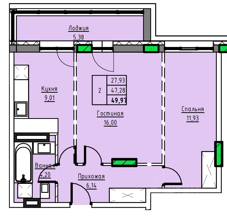Общая площадь49,97 м2