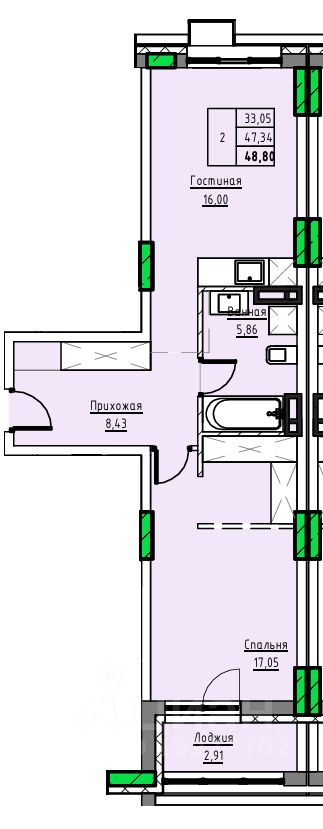 Общая площадь48,8 м2
